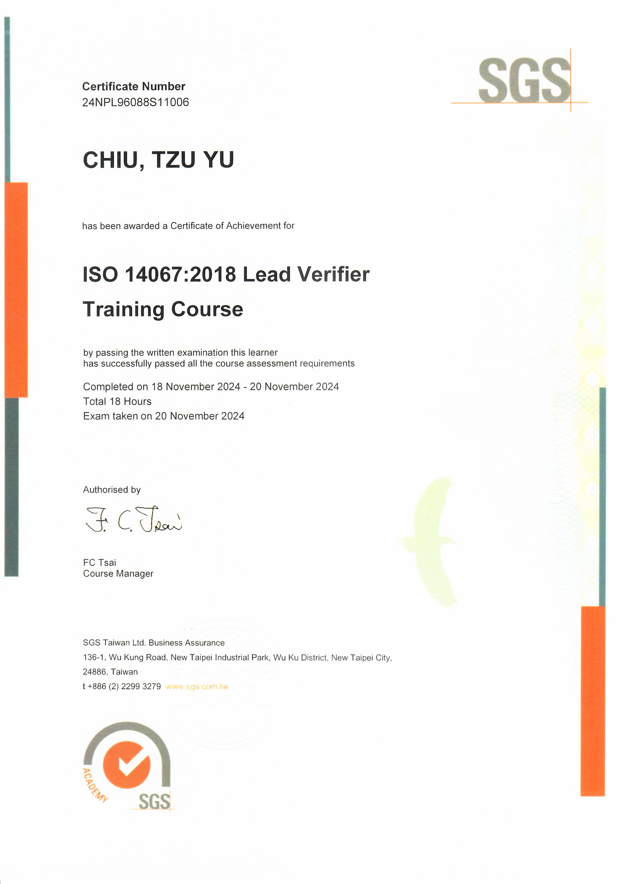 1.「碳足跡」:依照ISO國際標準,計算特定產品/服務的生命週期所排放的溫室氣體排放量,並由國際第三方查證公司查驗後發放聲明書。